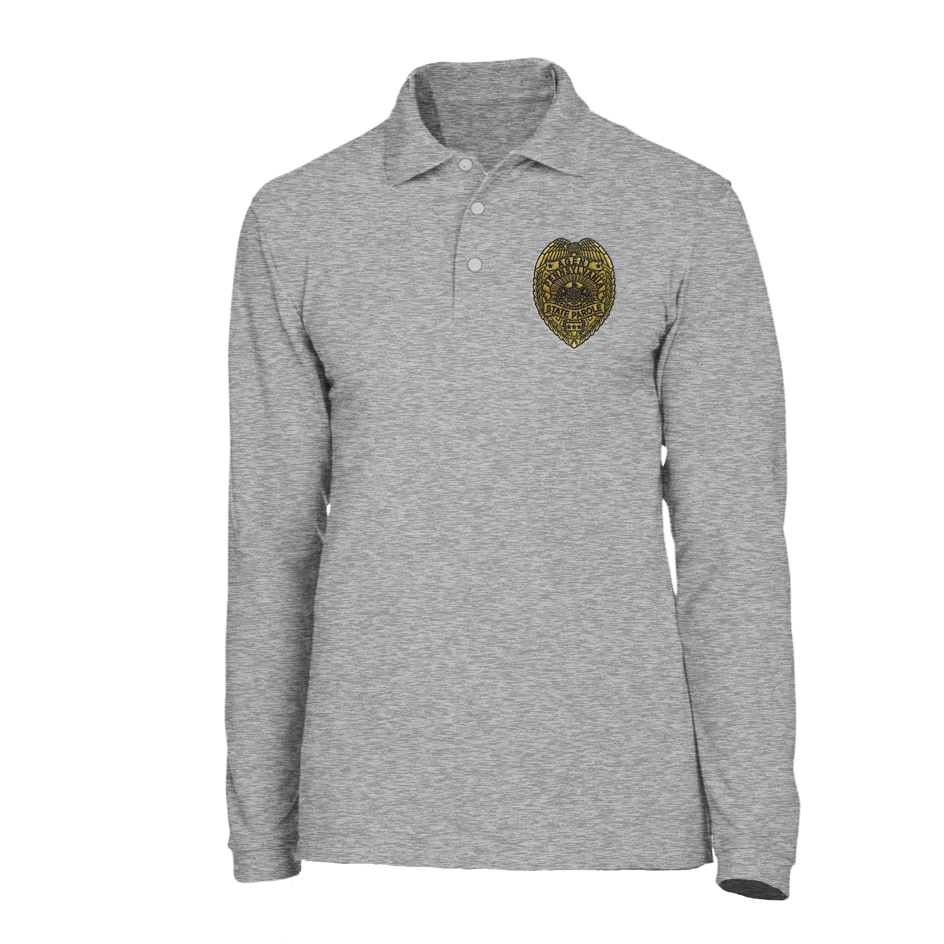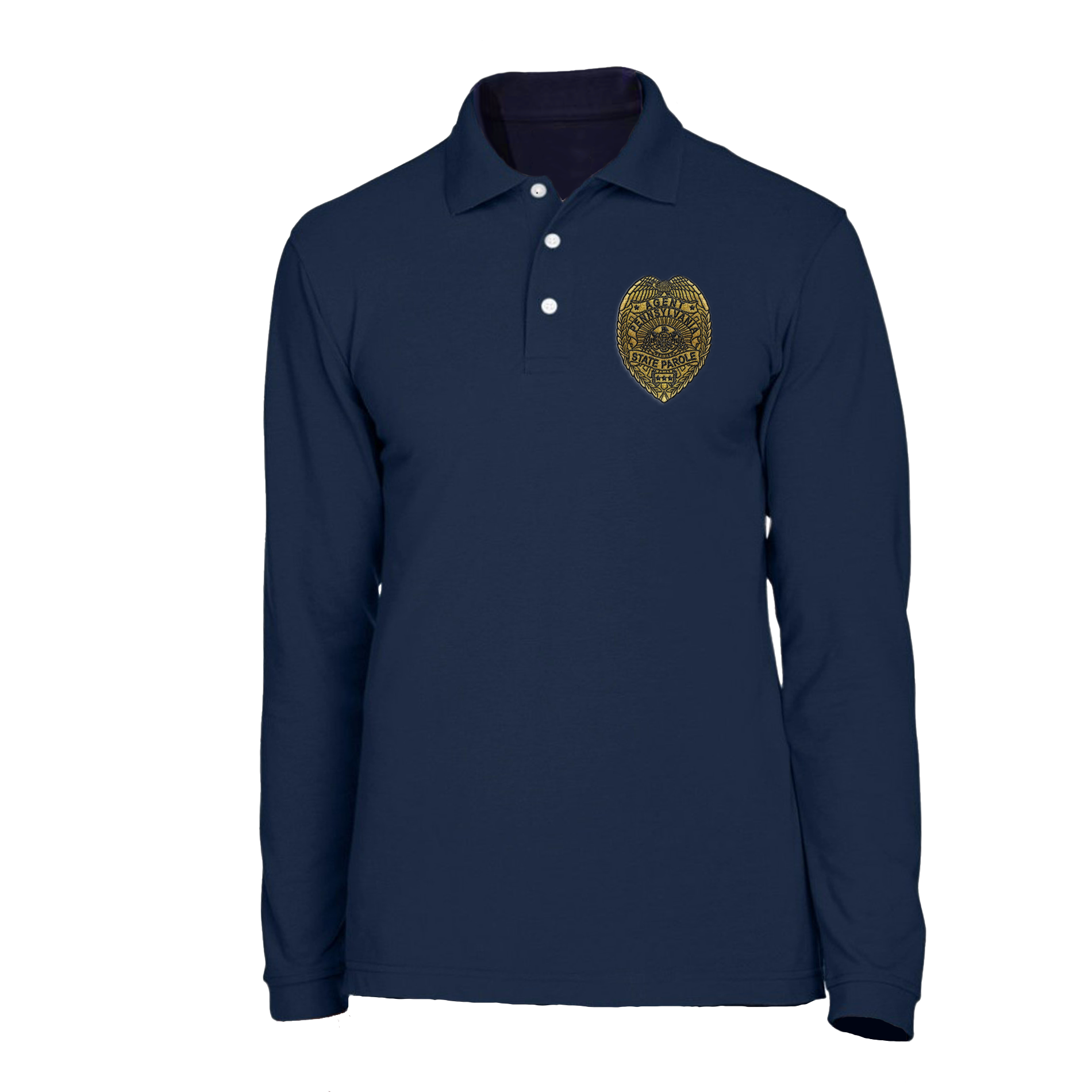 Adult Long-Sleeve Cotton Polo with Embroidered State Parole Agent Badge (Various Colors)