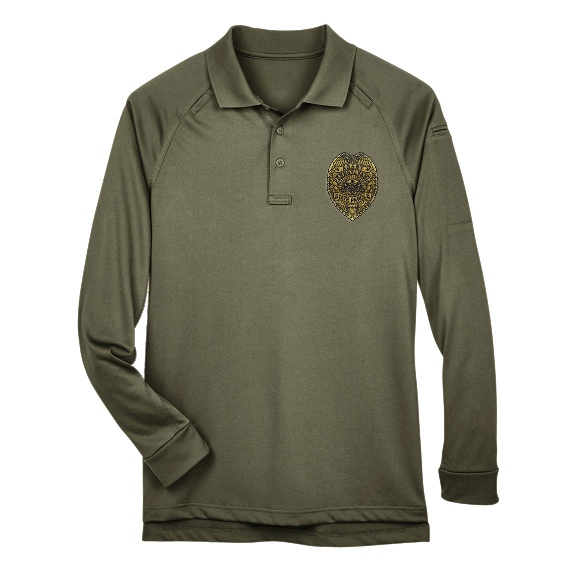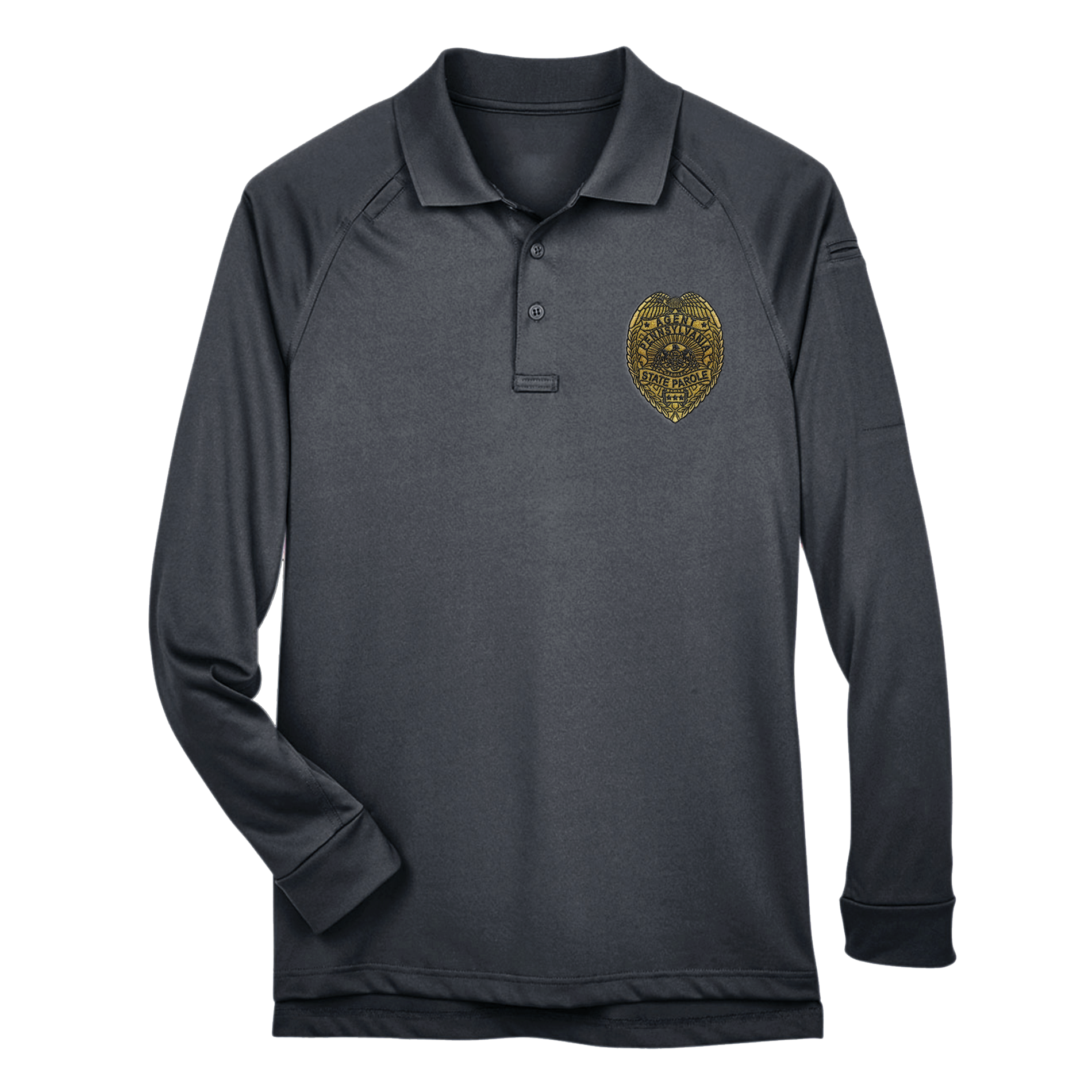 Adult Tactical Long-Sleeve Polo with Embroidered State Parole Agent Badge (Various Colors)