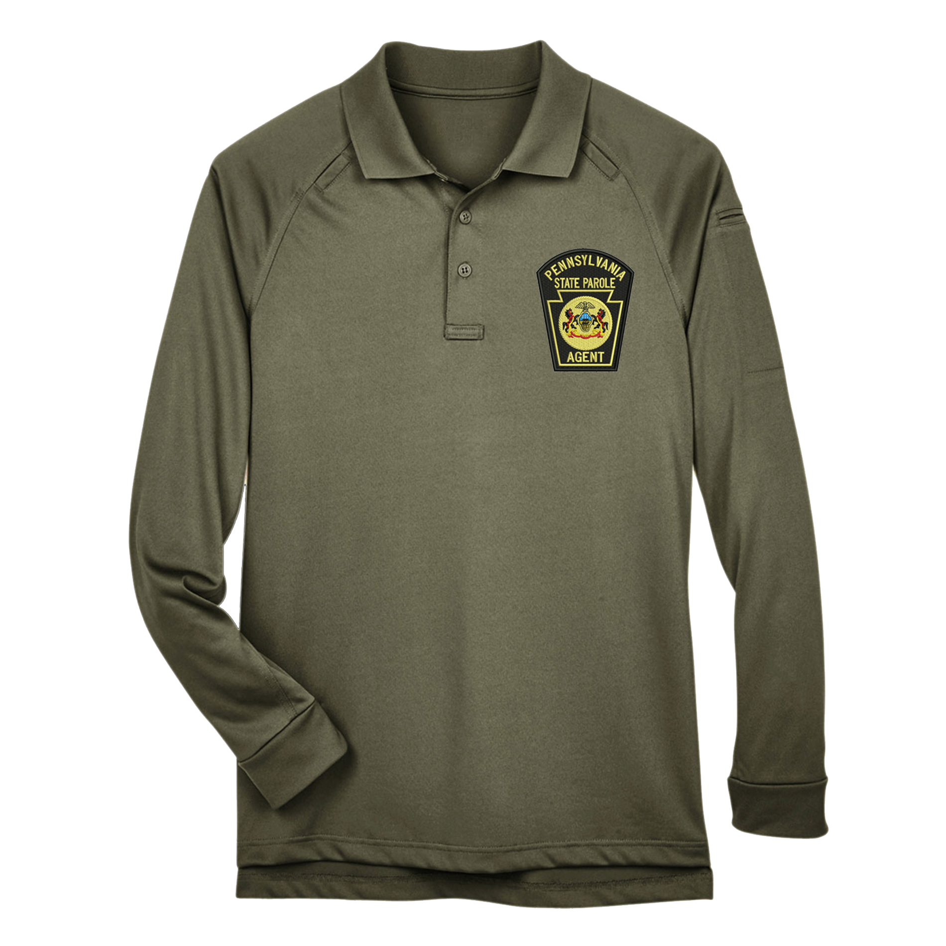 Adult Tactical Long-Sleeve Polo with Embroidered State Parole Agent Keystone (Various Colors)