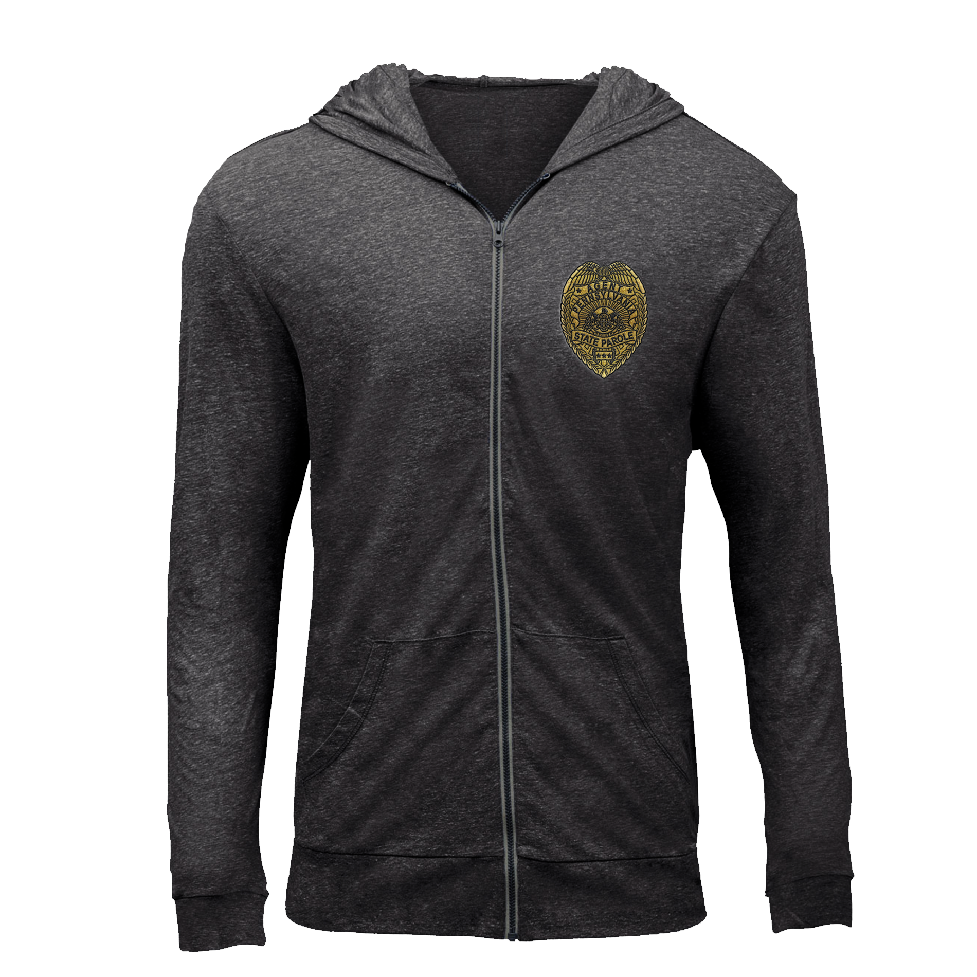 Triblend Unisex Lightweight Full-Zip Hooded Sweatshirt with Embroidered State Parole Agent Badge (Various Colors)
