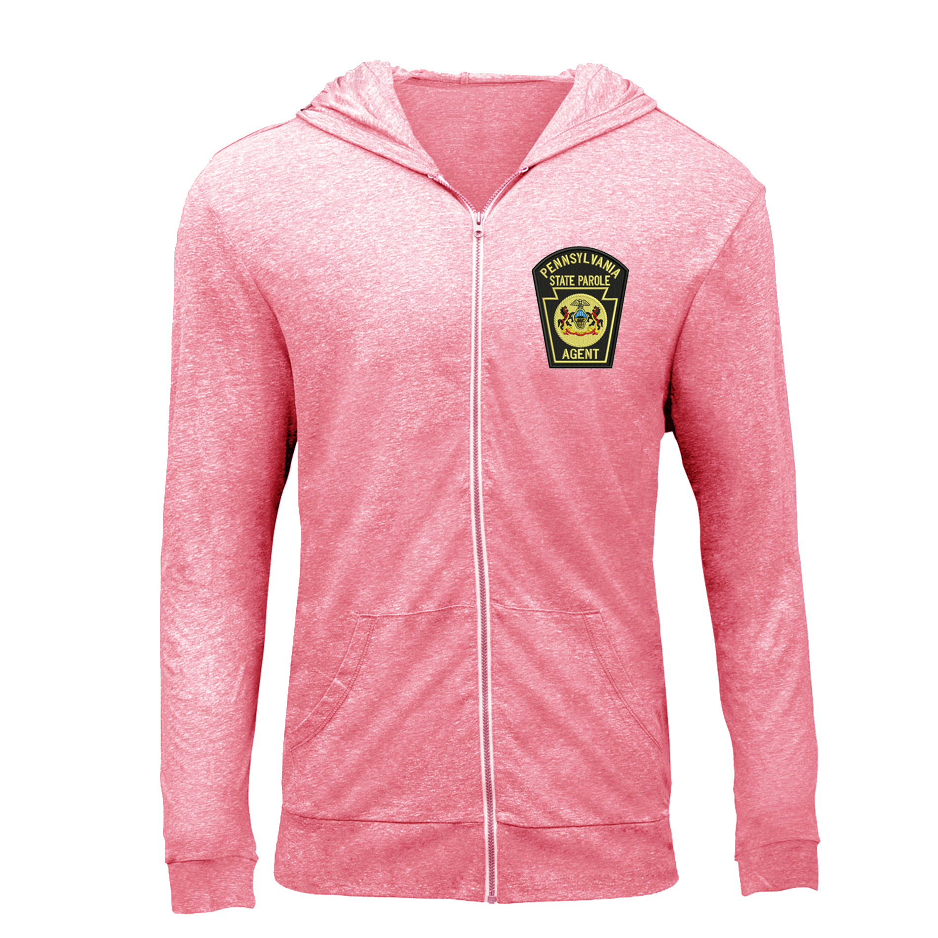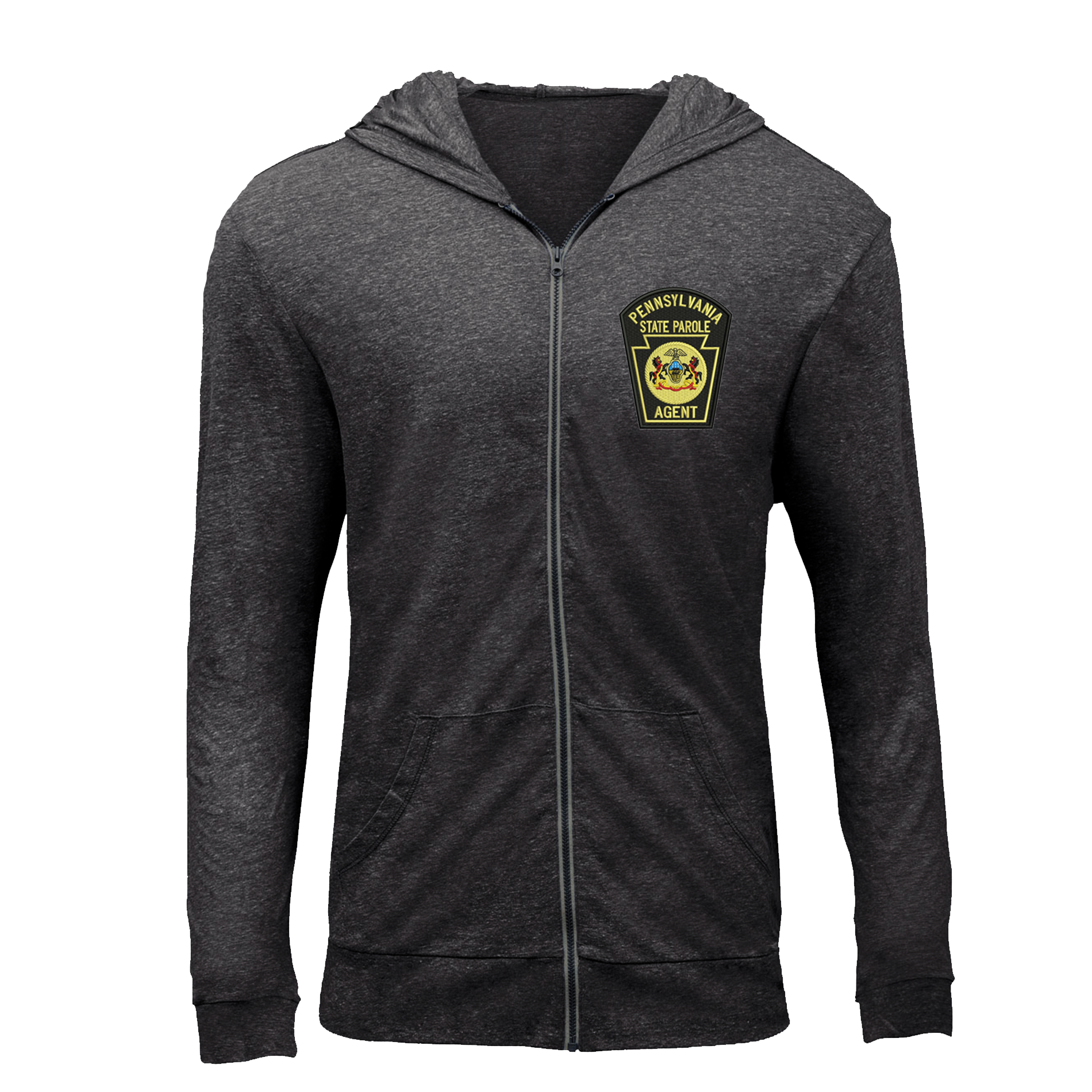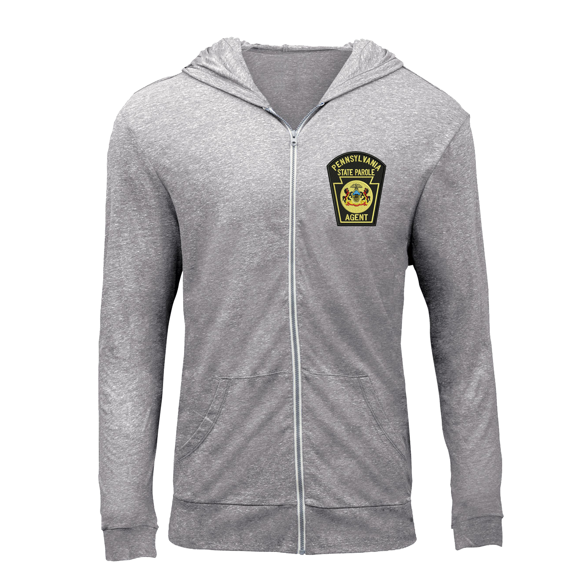 Triblend Unisex Lightweight Full-Zip Hooded Sweatshirt with Embroidered State Parole Agent Keystone (Various Colors)